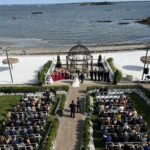 When it was time for the reception, everyone headed down into the main pavilion, where we had our full setup with sound, drums, and our fantastic saxophone player. The energy was already through the roof when we announced the bride and groom, who made their grand entrance arriving on a golf cart to “Signed, Sealed, Delivered.”