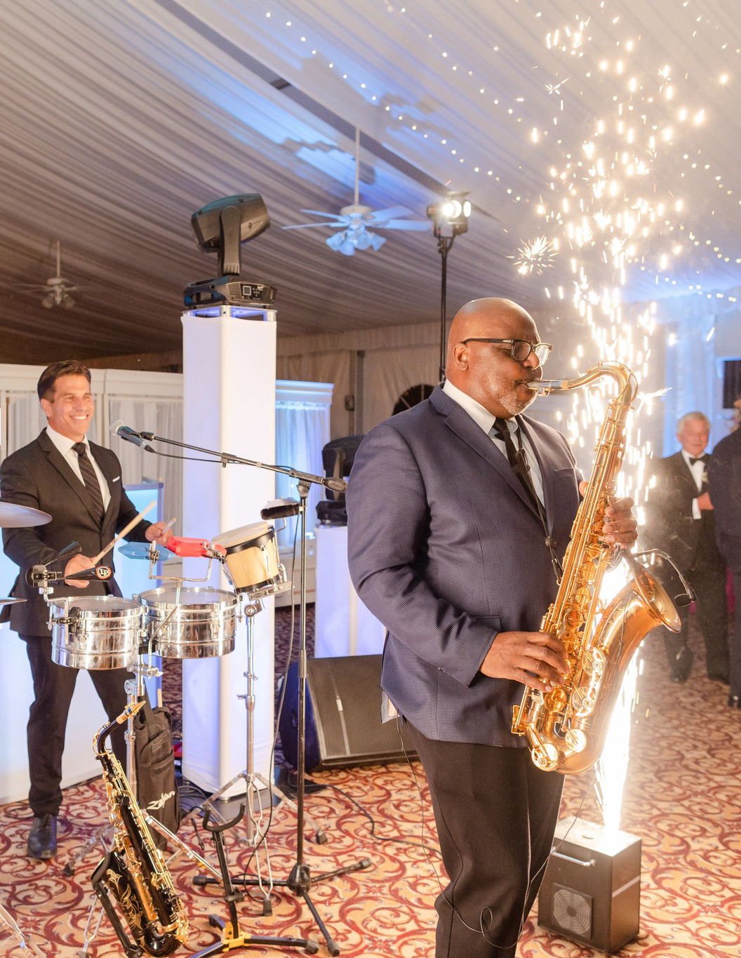 The sax adds smooth, dynamic melodies for cocktail hours and special moments, while live percussion drives the energy on the dance floor—together creating an unforgettable, high-energy experience.